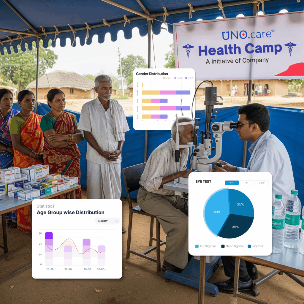 CSR-driven wellness camps can be fully integrated into occupational health strategy. For example, checkup data can be fed into Uno360 dashboards to track employee wellness trends.